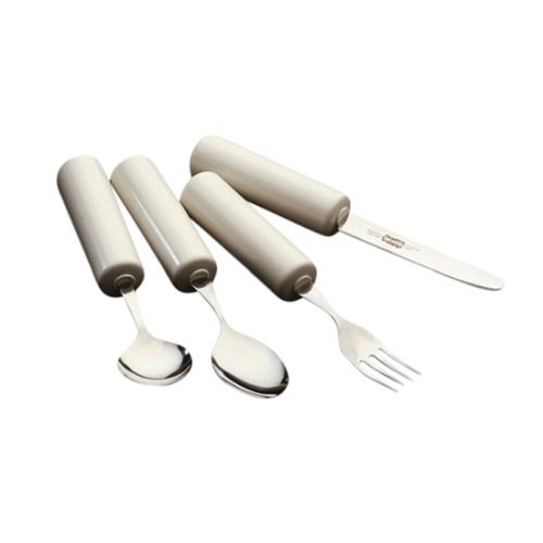 Bij een verzwakte greep, vb. door artritis of verlamming, kan een ander handvat vaak het verschil maken: dikker, lichter, voorgevormd, ergonomisch of met een clip. Alle bestekken zijn geschikt voor een huishoudelijke vaatwasser. Industriële vaatwassers zoals in grootkeukens en instellingen kunnen het handvat beschadigen. Bij grote bestellingen is het dan ook aangewezen om een paar testen te doen.
