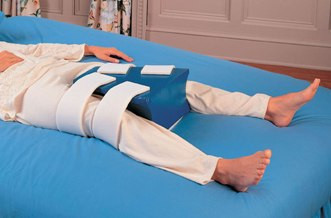 Voorgevormd trapeziumvormig kussen voor heupabductie. De zachte klittenbanden zijn inbegrepen.