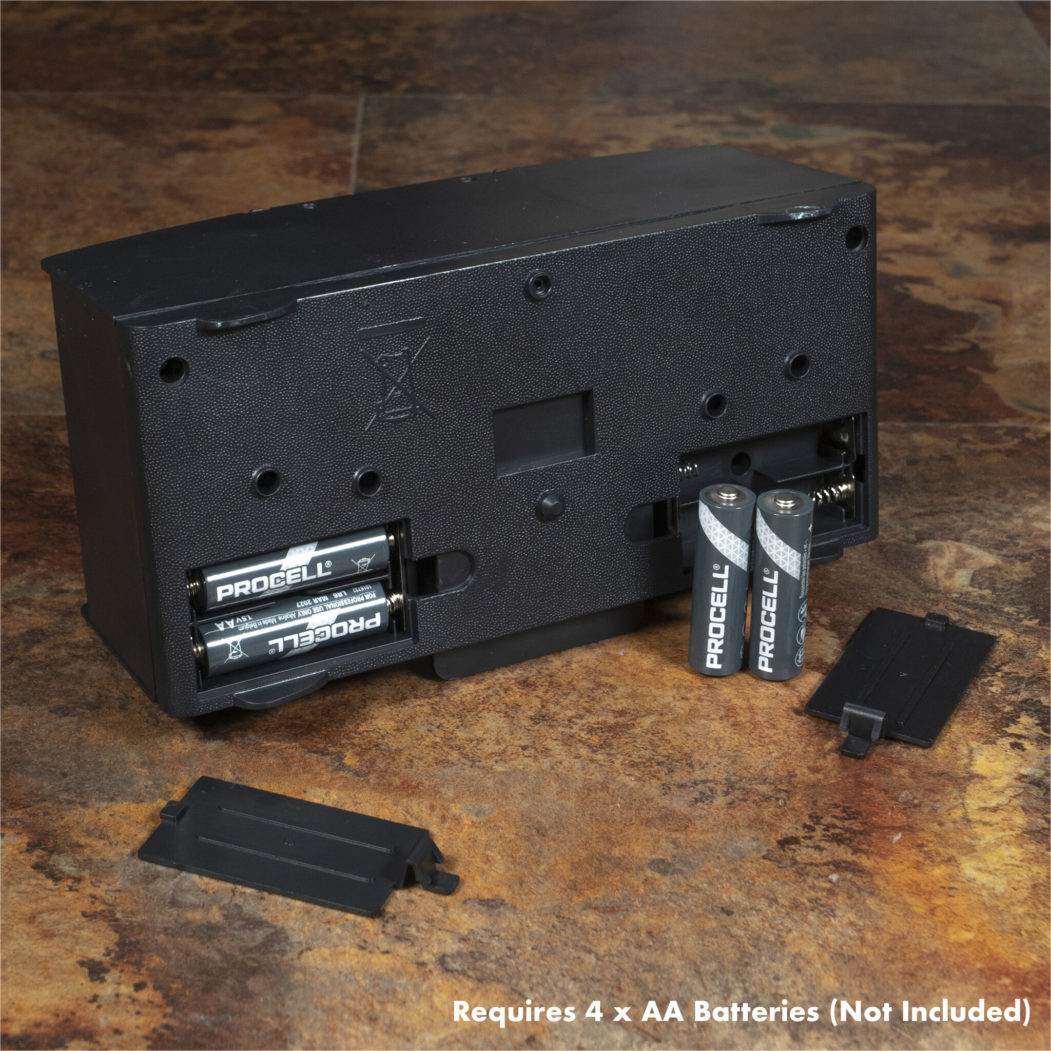 Batterij aangedreven door 4 x AA-batterijen (niet meegeleverd).