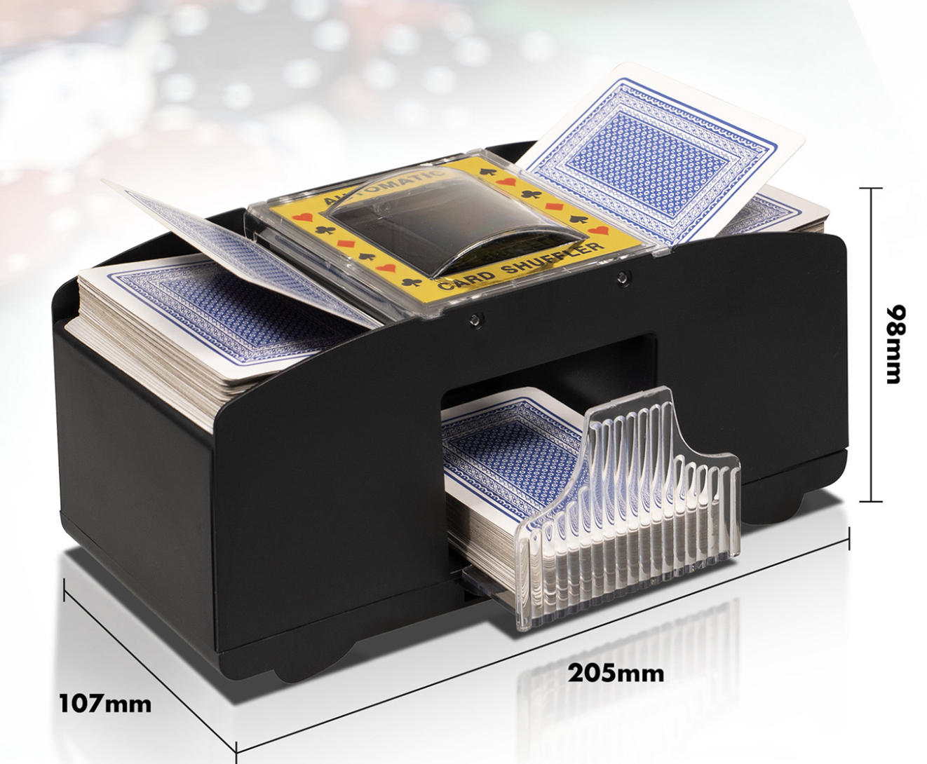 De Kaartenschudmachine is ontworpen voor gebruik met één of twee pakjes standaard speelkaarten (niet meegeleverd) en is ideaal voor algemeen kaartspel of casinospellen, maar is ook een geweldig product voor mensen met artritis of andere aandoeningen.