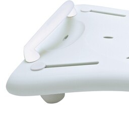 Badplank met gekleurde handgreep en stevige geperforeerde zitting. De bijgeleverde handgreep is zo gevormd dat ze vrij is van de muur.