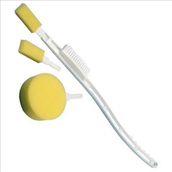 Badspons met lang handvat in kunststof. Vooral geschikt voor het wassen van de voeten indien men deze moeilijk of niet kan bereiken: