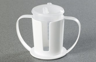 Deze bekerhouder is vervaardigd uit sterk ABS. Geschikt voor de meeste standaard tuitbekers. Stevige, verbrede basis en 2 grote handvatten.