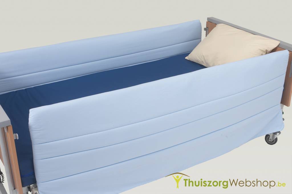 Deze bekleding wordt over de bedsponde bevestigd ter beveiliging van onrustige personen. Zachte, aangename stof. De bekledingen zijn voor- en achteraan gesloten en schuiven over de bedsponden van Days 8 of 8L.