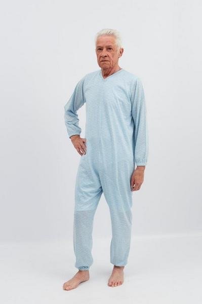 *Winter pyjama in 50/30/20 acryl/kat./pol. blauw, lange pijpen, lange mouwen, V-hals, ritssluiting op de rug.