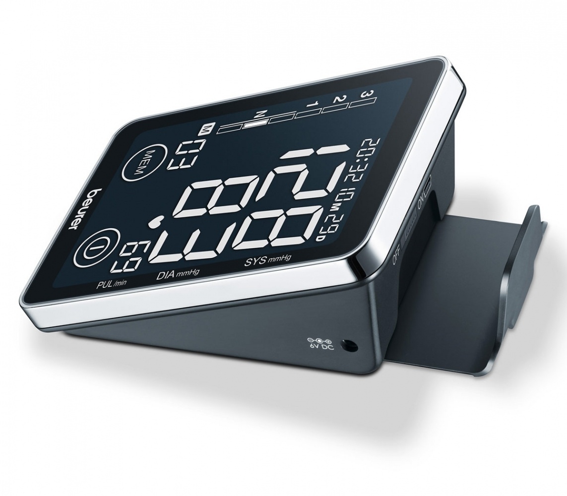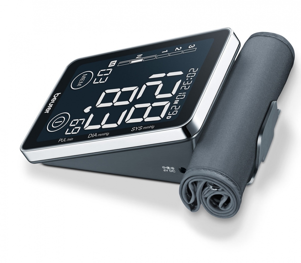 Vol automatische bovenarm bloeddrukmeter met touchscreen display. Extra groot, makkelijk te lezen zwart display. WHO classificatie. Waarschuwing bij eventuele hartritmestoornissen. 2 x 60 geheugens. Manchet omtrek 22-30 cm.