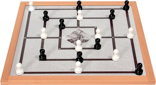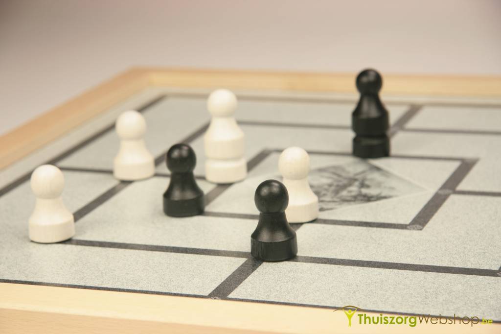 Magnetisch en vergroot damspel. De schijven zijn vervangen door grote, gemakkelijk vast te nemen pionnen. Deze zijn magnetisch, waardoor ze moeilijker omvallen.