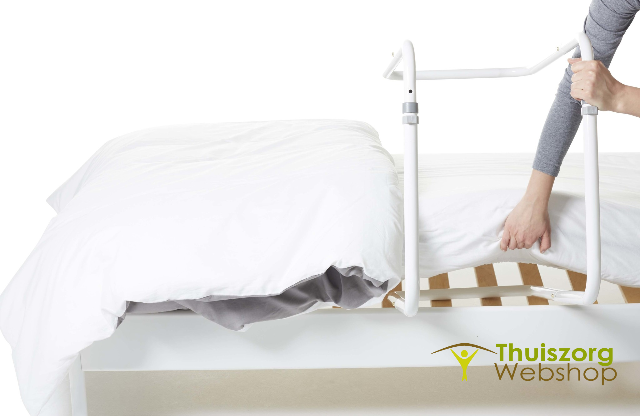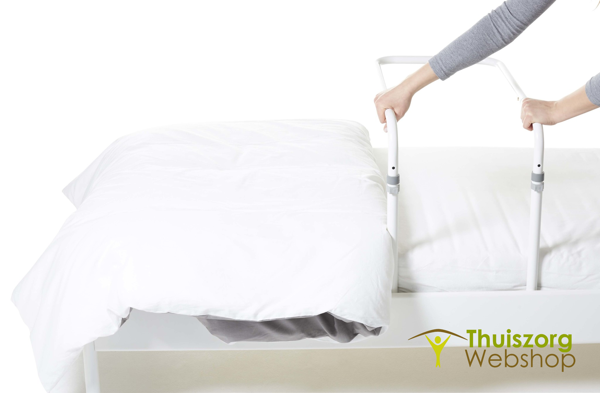 Het frame bestaat uit twee delen en kan eenvoudig opgeborgen of meegenomen worden. De dekenboog kan zowel aan de zijkant als aan het voeteneinde worden gebruikt.