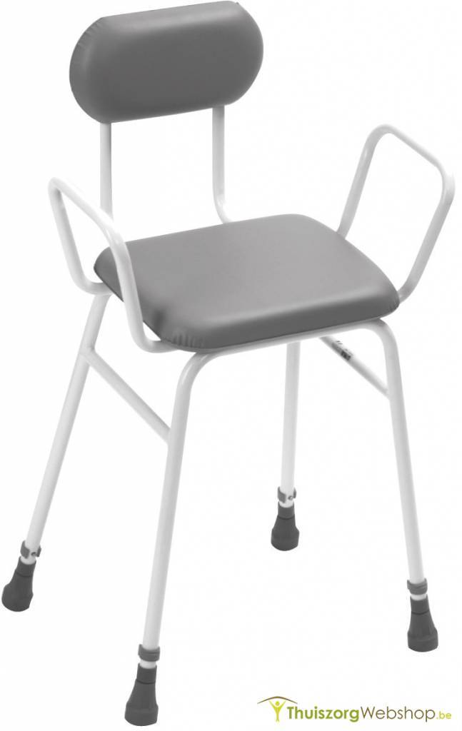 Eenvoudige douchestoel met comfortabele vierkante zitting. Deze helt licht naar voor om het rechtstaan te vergemakkelijken.