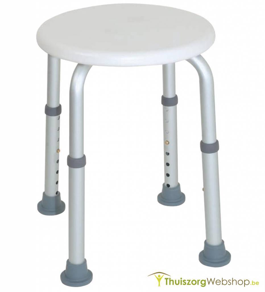 Lichtgewicht en stabiele douchetaboeret in aluminium met kunststof zitting. Voorzien van stevige anti slip pootjes.