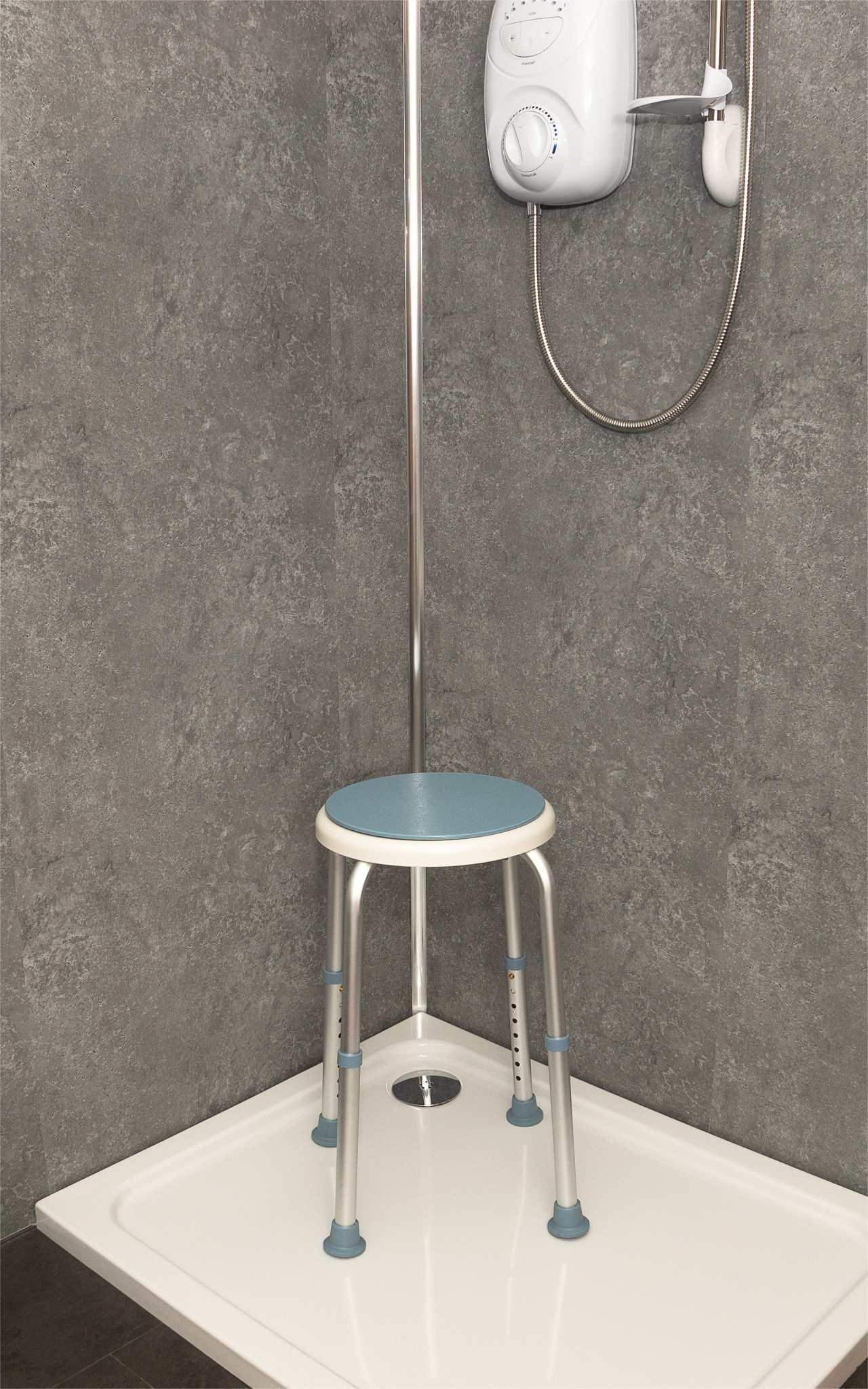 Deze veelzijdige, multifunctionele kruk kan overal in huis worden gebruikt. Met een comfortabeledraaibare zitting, ideaal voor mensen die hulp nodig hebben bij het draaien van de ene naar de andere kant terwijl ze zitten. Dit betaalbare en eigentijdse ontwerp is duurzaam en gemaakt van robuustaluminium. Het is lichtgewicht, waterdicht, roestbestendig en in hoogteverstelbaar met antislip voor veiligheid en comfort. Klein van formaat wanneer opgevouwen. Wordt plat verpakt geleverd en kan binnen of buiten worden gebruikt en is geschikt voor volwassenen of kinderen. Zeer eenvoudig te monteren. Geen gereedschap nodig. Acht genummerde hoogte-instellingen op de poten zorgen voor een vlakke zit.