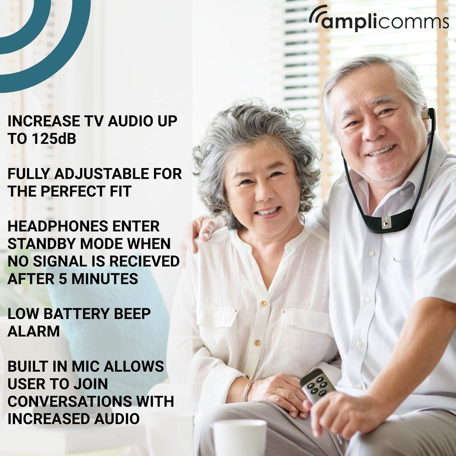 De draadloze Amplicomms TV-hoofdtelefoon 3500 biedt mensen met gehoorproblemen een prettige luisterervaring tijdens het kijken van televisieprogramma’s.