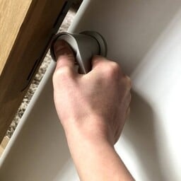 1. Druk op de voorkant van de klink de ronde knop naar binnen