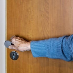 De dubbelwerkende deurklink fungeert als een fysieke barrière voor mensen met dwaalgedrag. Het voorkomt dat iemand een deur opent die niet voor hem of haar toegankelijk is.