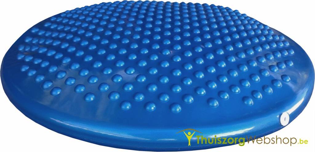 Dit kussen wordt gebruikt voor actief en dynamisch zitten, evenwichts- en proprioceptietraining. Eén zijde is vlak, de andere heeft noppen.