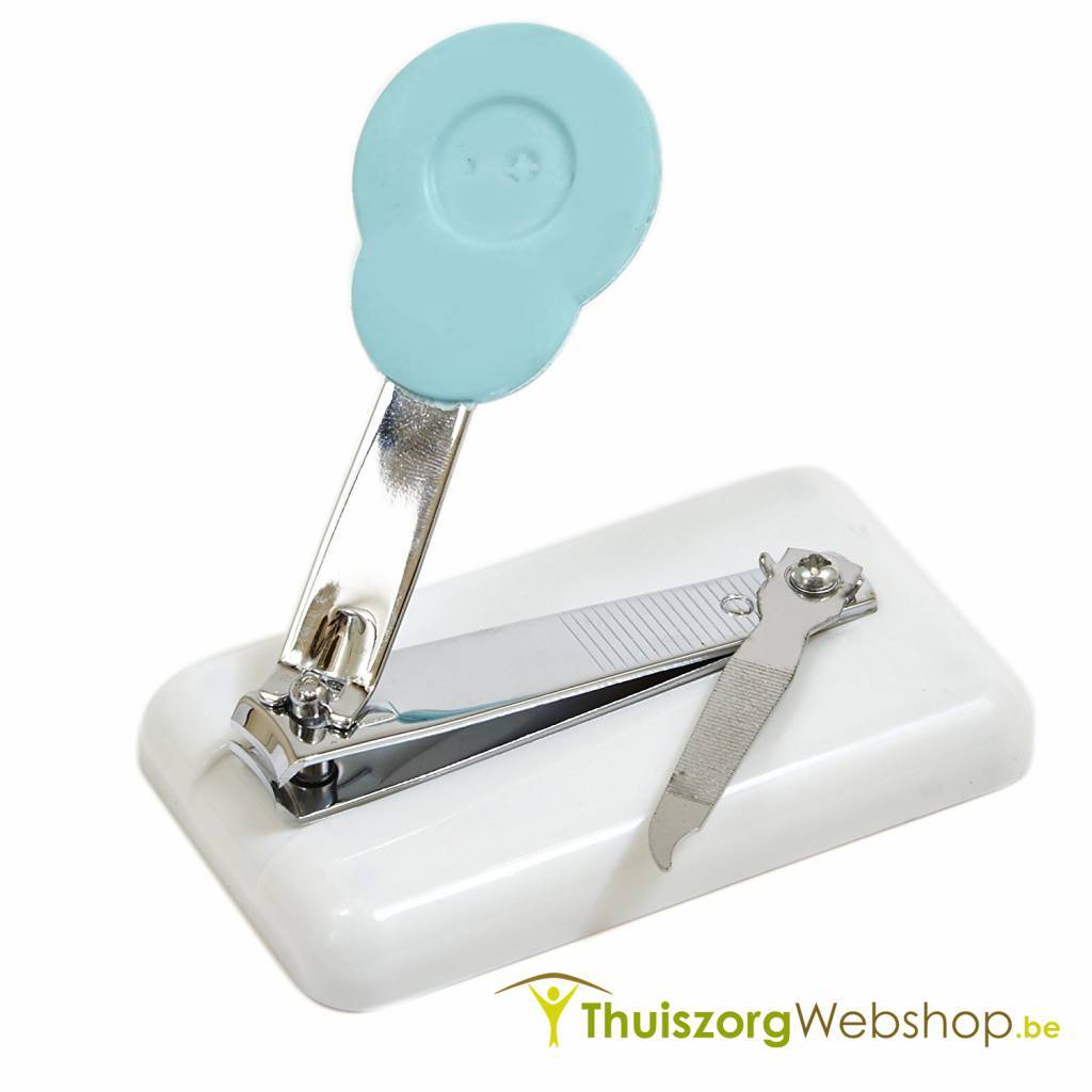 Nagelknipper die is vastgemaakt op een kunststof antislipvoet. De grote hefboom vereist weinig kracht. Tevens voorzien van een nagelvijltje.
