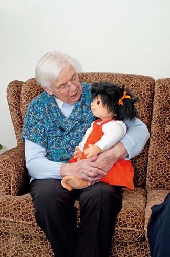 Als je de pop op je linkerarm houdt, zoals de meeste mensen dit vanzelfsprekend met een baby doen, dan kijkt de pop je aan. Dit contact roept het gevoel op om voor de pop te willen zorgen. De poppen zijn ook makkelijk aan- en uit te kleden.