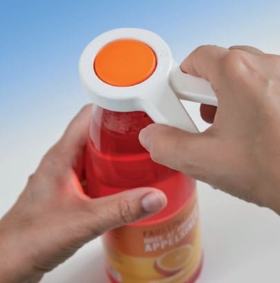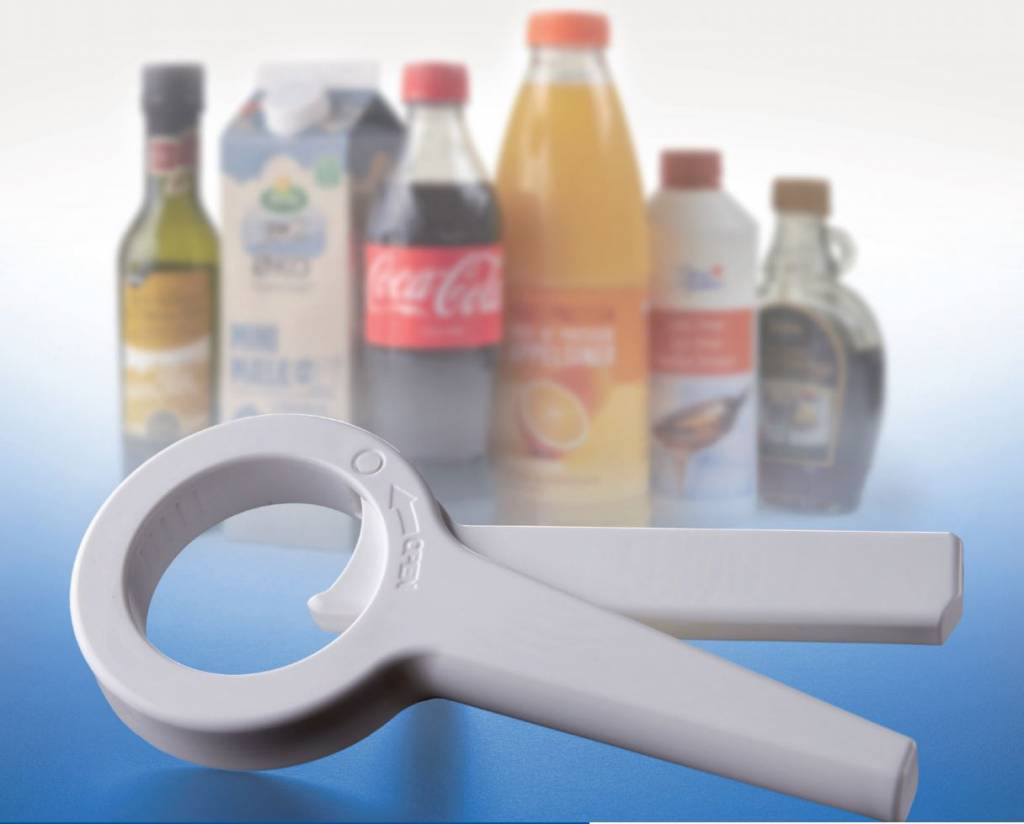 Kunststof flessenopener die werkt zoals een tang. De Cap-Off maakt het openen van plastic en metalen schroefdoppen eenvoudig, ook voor mensen met zwakke, pijnlijke polsen. Vervaardigd uit POM plastic, 3 maal sterker in vergelijking PP. Voor schroefdoppen tot 4 cm diameter.