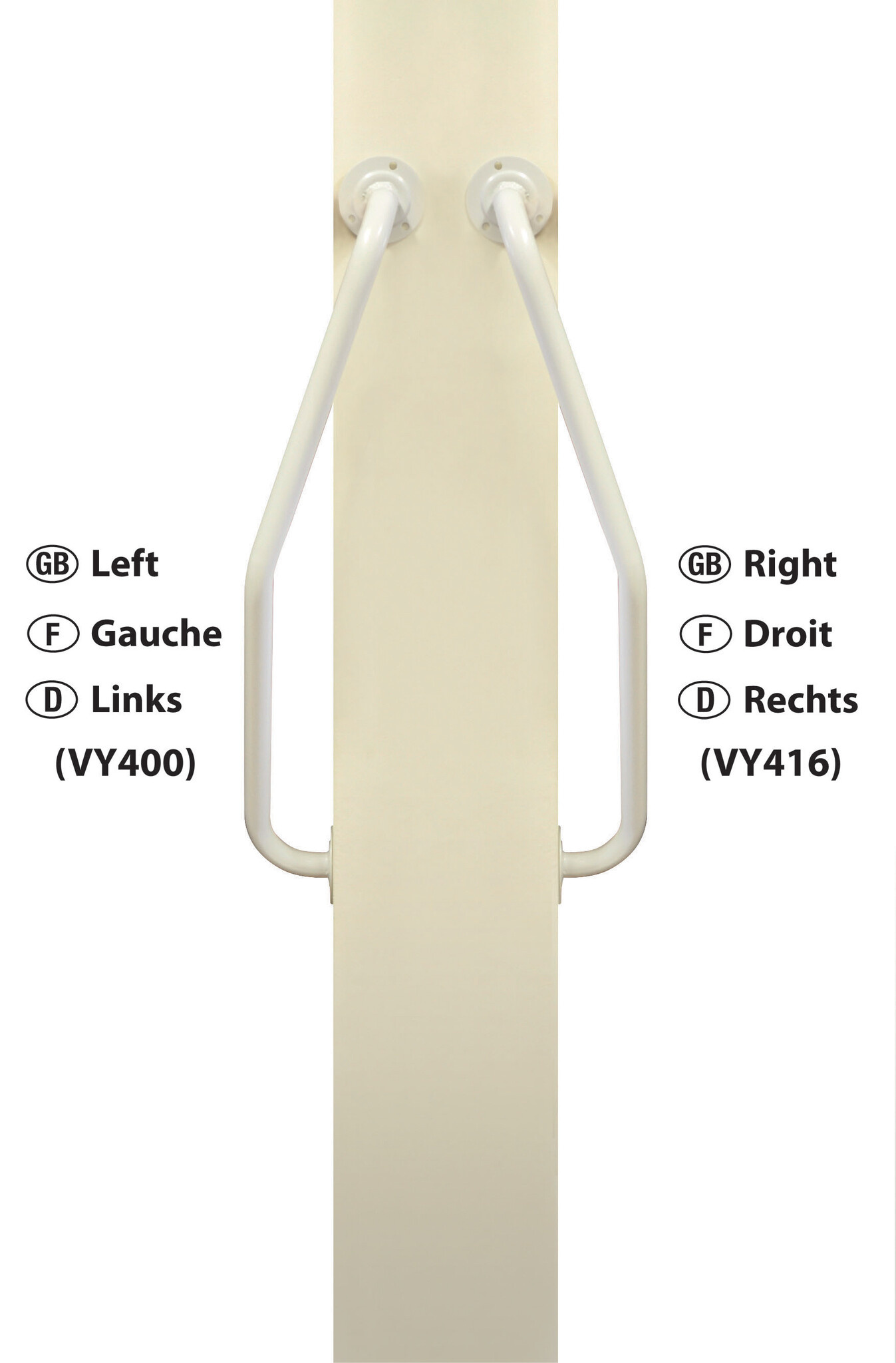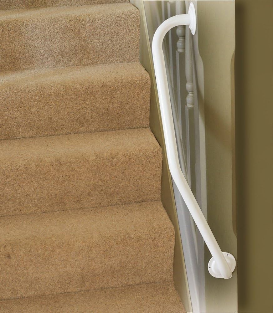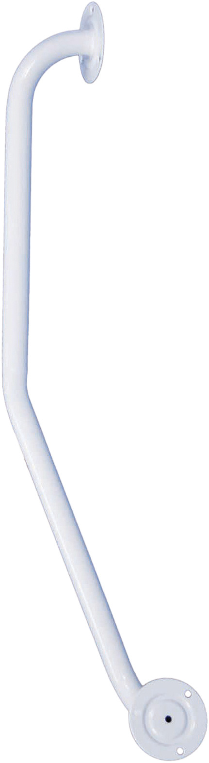 De beugel is een kwalitatieve leuning, vooral populair op de volumemarkt. De beugel heeft een stevige, witte epoxycoating en is gebogen, waardoor hij ideaal is voor montage in deuropeningen en trappenhuizen. Hij is verkrijgbaar in zowel links- als rechtshandige versies en biedt een praktische oplossing voor gebruikers. De flenzen zijn zo ontworpen dat ze comfortabel op een standaard houten nieuwe paal passen zonder dat het hout splijt.