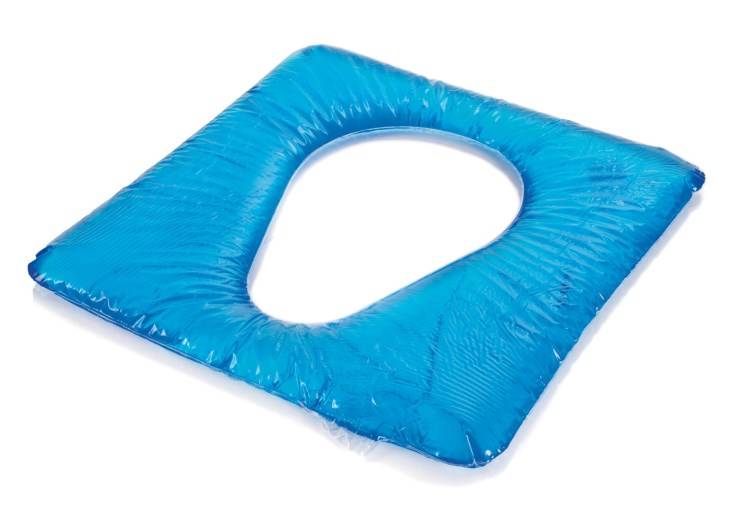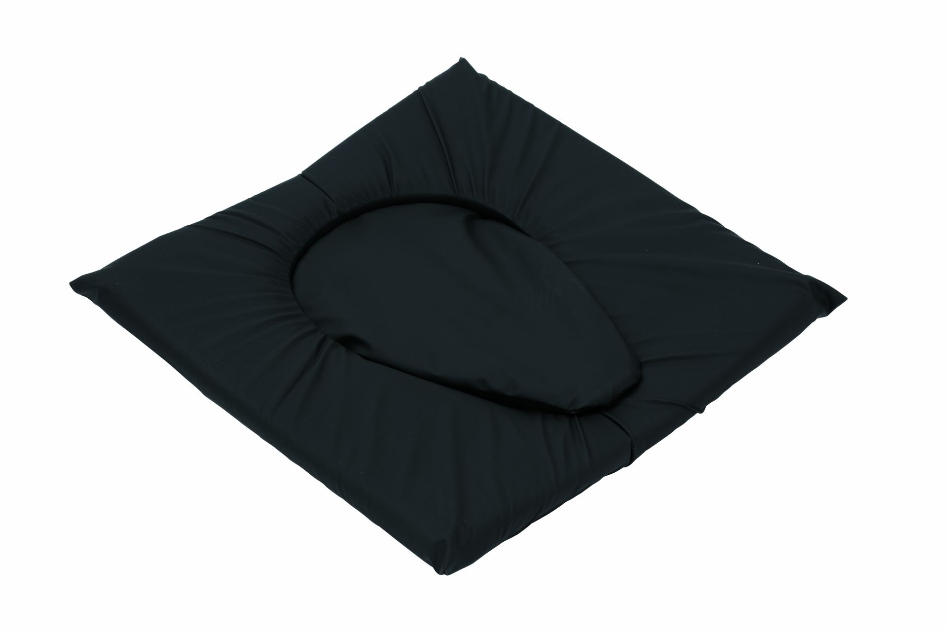 Compact ringvormig comfortabel gelkussen, speciaal ontworpen voor het gebruik op een toiletstoel. De opening kan gevuld worden met het meegeleverd binnenkussen zodat het ook kan gebruikt worden als volwaardig zitkussen.