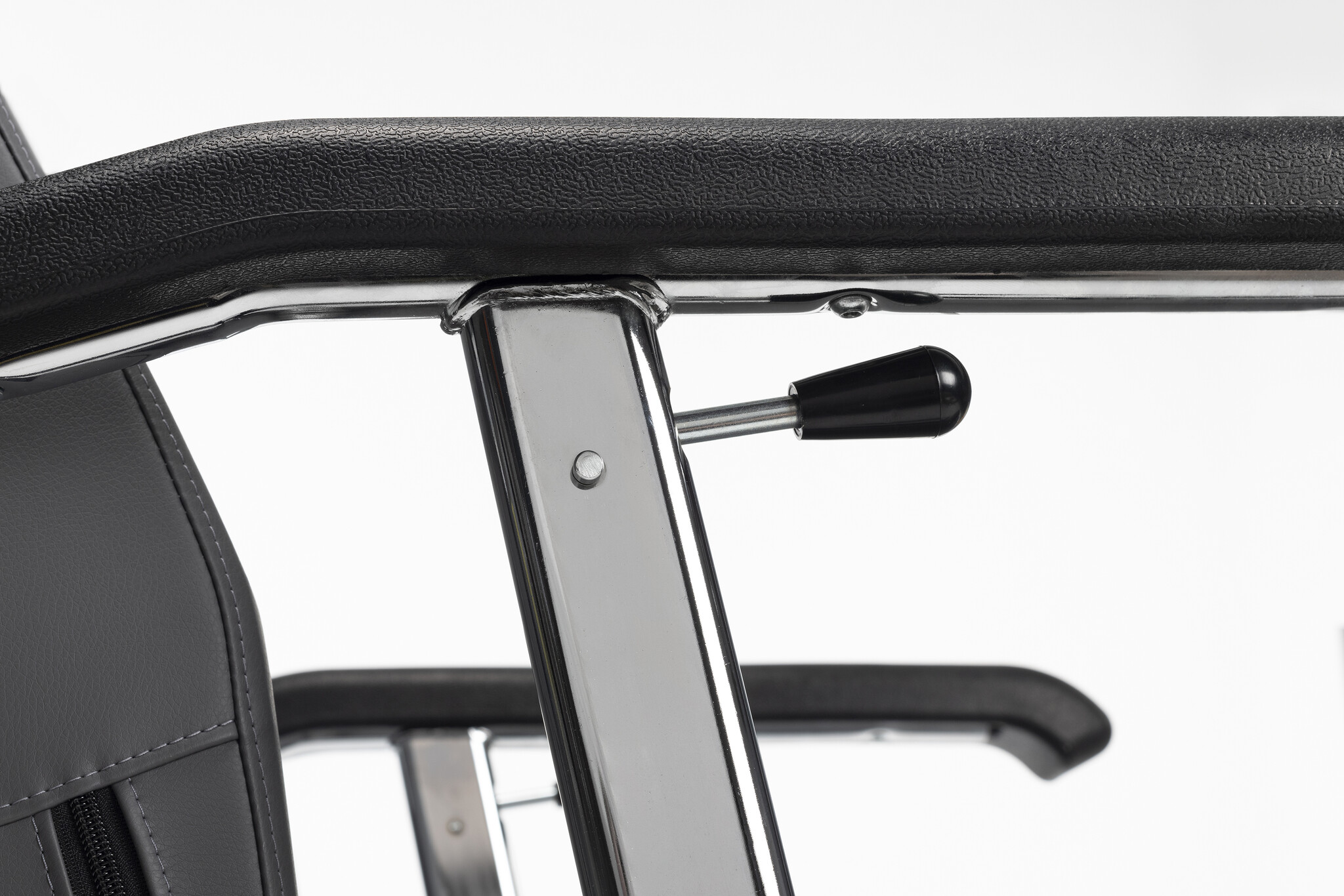 De Normandie 2F heeft een inclineerbare rug tot 45°. Door middel van de twee hendels kan de beensteun apart versteld worden. De armsteunen zijn in hoogte verstelbaar en het metalen onderstel geeft de nodige stevigheid voor de gebruiker.