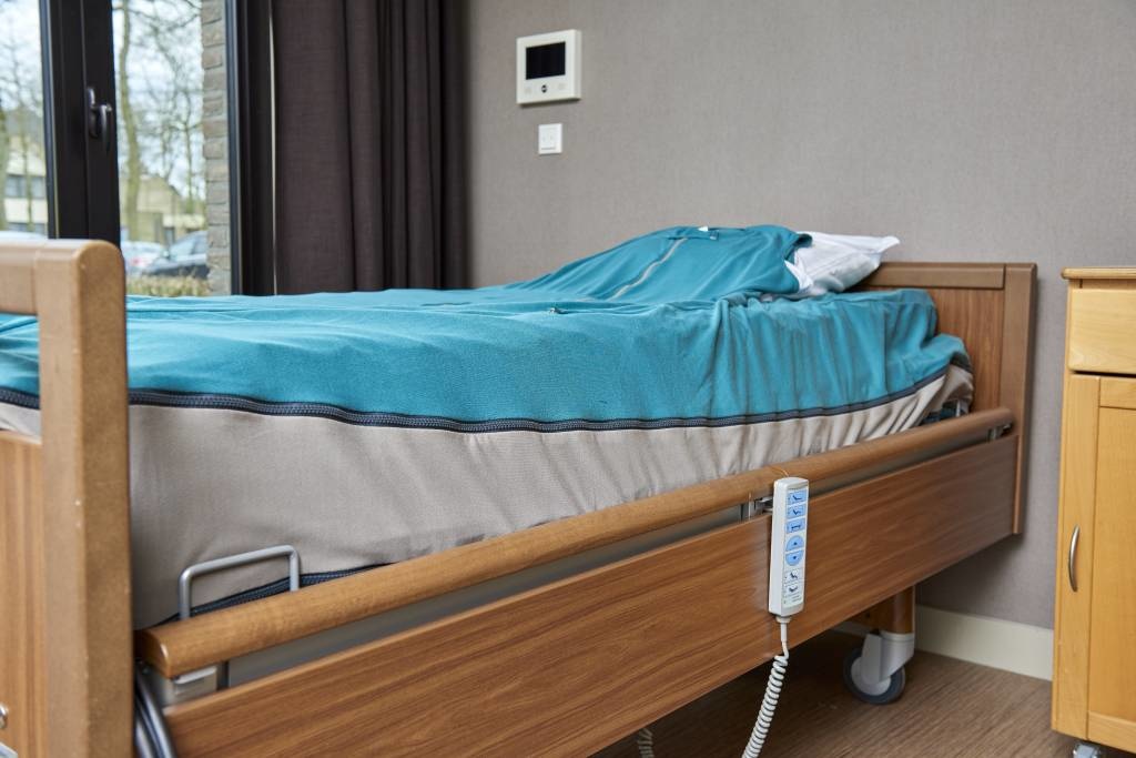 Groen verpleegdeken volledig rond de matras voor onrustige slapers