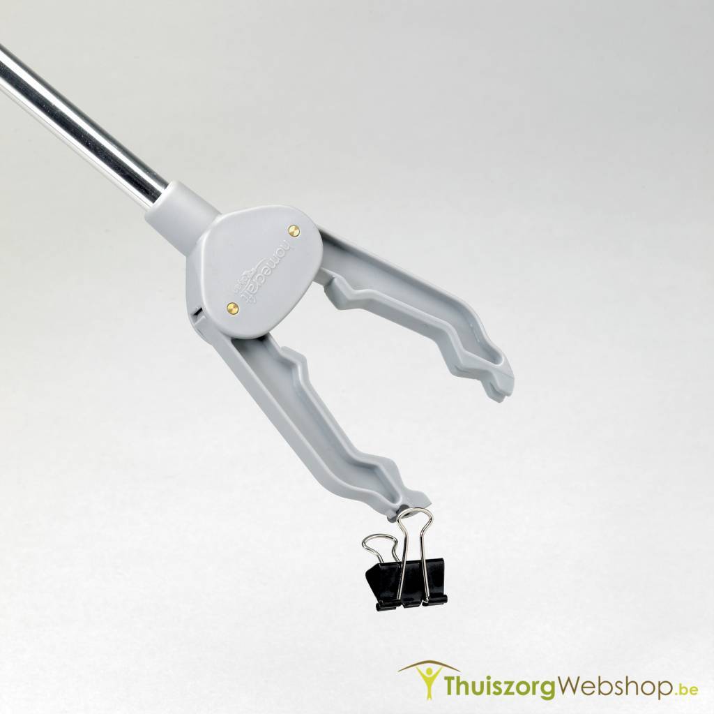 Lichtgewicht grijper waarbij de beide grijparmen tegelijk bewegen. Het grijpgedeelte kan over 360° draaien. Op de top is er een magneetje voor het opnemen van kleine metalen voorwerpen. Bevat tevens een haakje en een clip om hem vast te maken aan een wandelstok of loophulp. Bepaalde types hebben een blokkering. Deze kan het voorwerp vast klemmen, zodat het niet kan vallen tijdens het verplaatsen.
