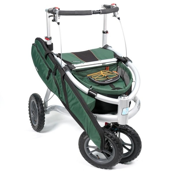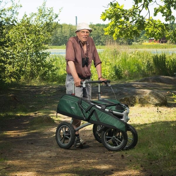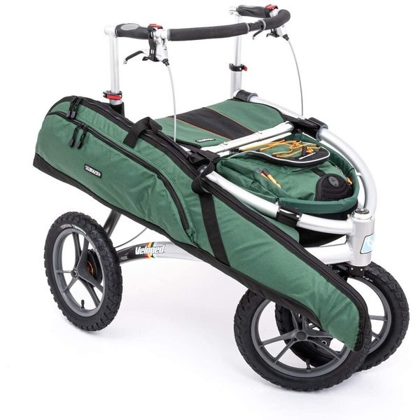 De Veloped heeft een uniek 3-wiel ontwerp, maar zoals u ziet heeft het in feite vier wielen. Het is bedoeld als loophulpmiddel, vooral voor mensen die de behoefte hebben om fysiek actief te zijn buiten de deur. Ontworpen met als doel om te wandelen en de mobiliteit van de gebruiker te verhogen, is de Veloped uniek in z’n soort. De voornaamste eigenschap is het dubbele voorwiel waarmee u obstakels tot 13 cm hoog kunt overwinnen. De kracht die u nodig heeft om lagere obstakels te bedwingen is, in vergelijking met een traditioneel wiel, eveneens verlaagd. Het 3-wiel ontwerp verhoogd, in combinatie met de voorwielophanging en de luchtbanden, het comfort en de mobiliteit op elke oneffen ondergrond.