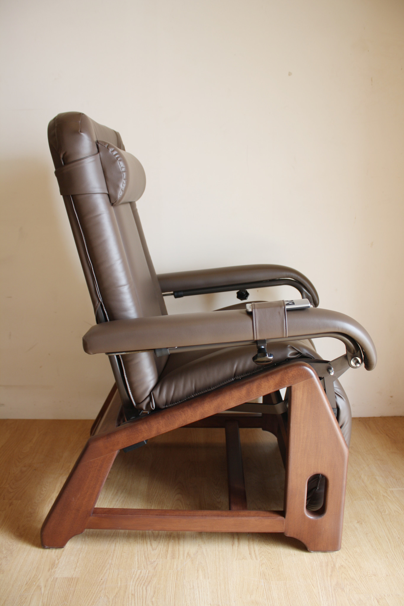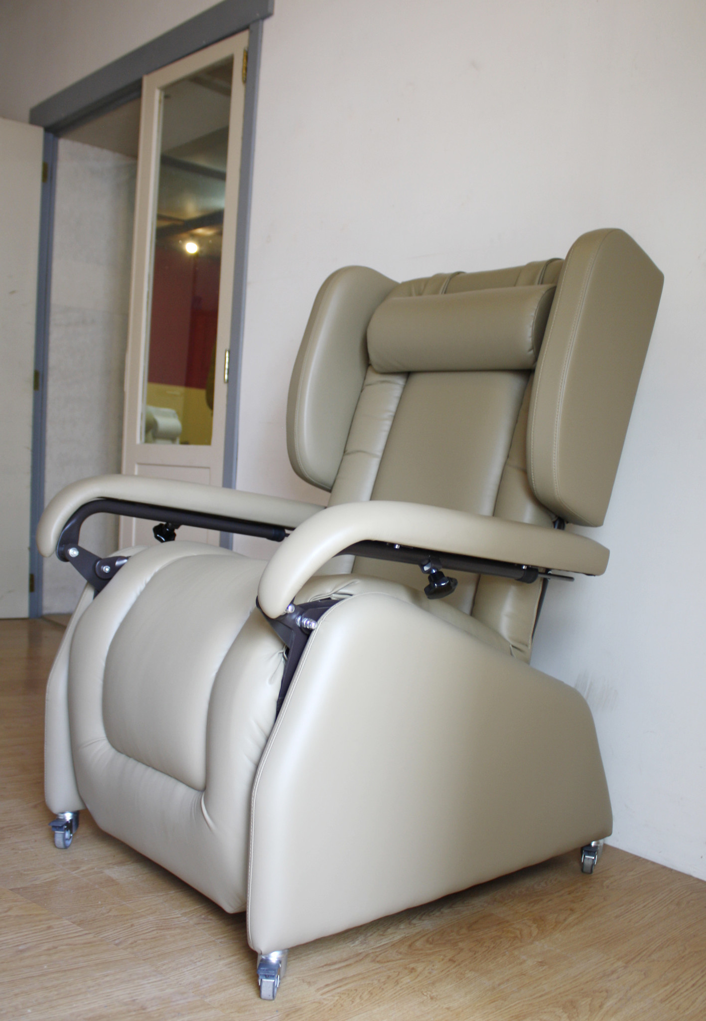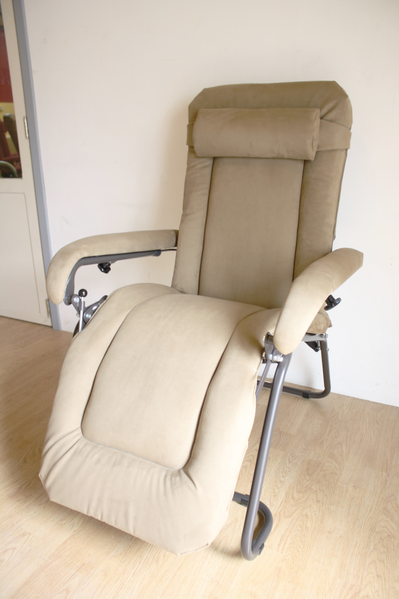 Als je met je rug naar achteren leunt, dan gaan de benen omhoog. De ergonomische zetels kunnen zowel manueel als met motor bediend worden (optie). Er zijn twee standen, omhoog of omlaag om het gemakkelijk te houden.