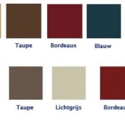 Kleuren: blauw, bordeaux, chocolade, taupe, beige en grijs