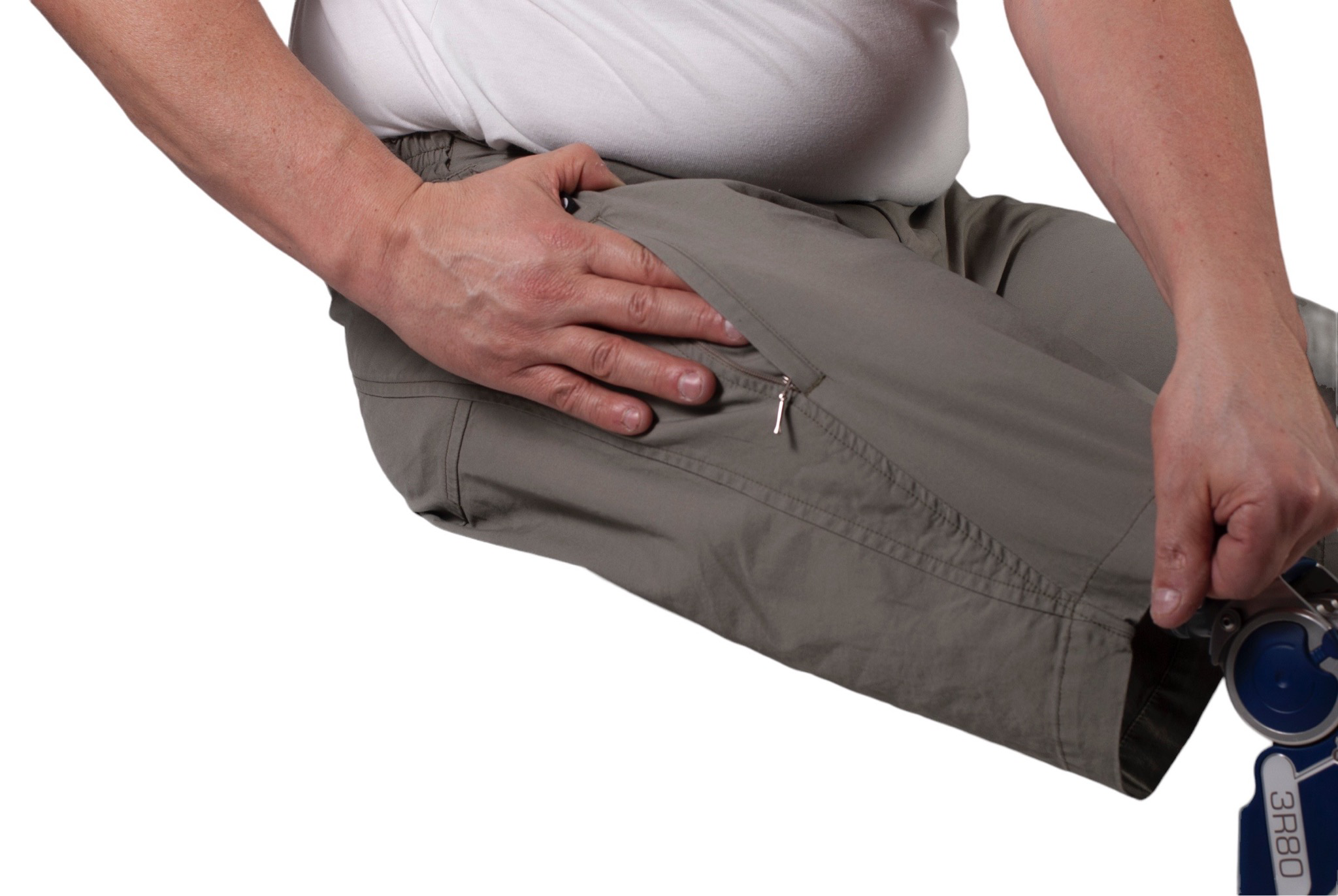 Klassieke, stijlvolle broek voor rolstoelgebruikers. De broek komt hoger in de rug en is lager op de buik.