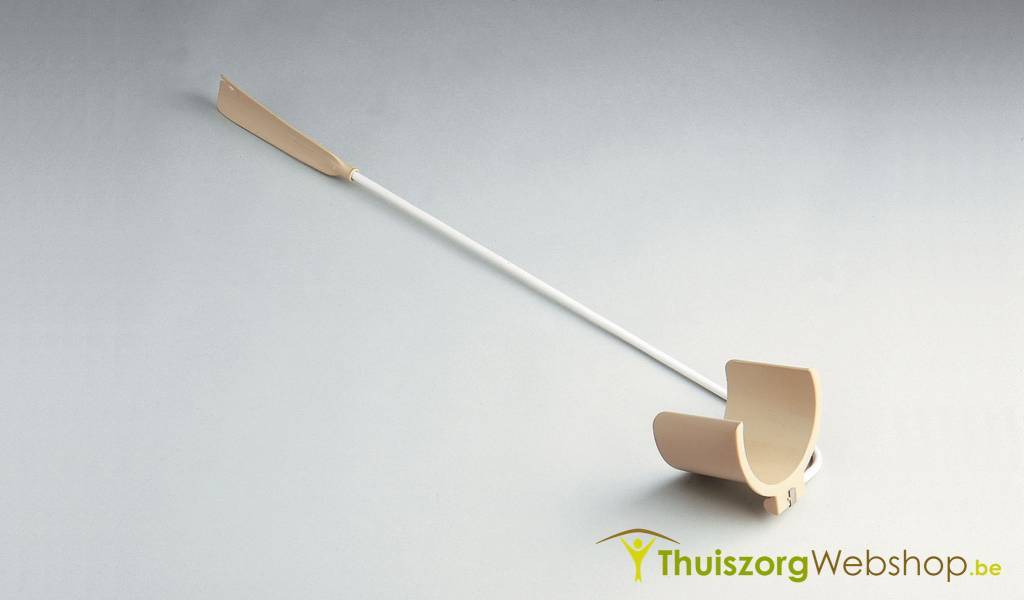 Kousenaantrekkers zijn bedoeld voor mensen die nog moeilijk hun voeten kunnen bereiken, maar wel hun 2 handen kunnen gebruiken.