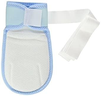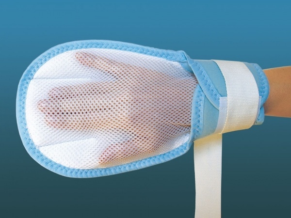 De patiënt kan geen objecten vastgrijpen of riemen openen. Hij kan geen sondes uittrekken of verbanden verwijderen. Omdat de vingers niet gescheiden zijn (wantvorm) kan de patiënt ze toch nog vrijelijk bewegen. Wanneer de patiënt steeds zijn handschoenen wil uittrekken met behulp van zijn mond, zijn er twee ringen waarin een slot kan worden bevestigd.