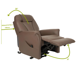 De Montreal liftzetel laat een volledige inclinatie toe met maar een minimum afstand van 32 cm van de muur. Eén motor: in een eerste fase inclineert het beengedeelte zich tot de gewenste positie. Vervolgens inclineert het ruggedeelte naar de door u gekozen positie.