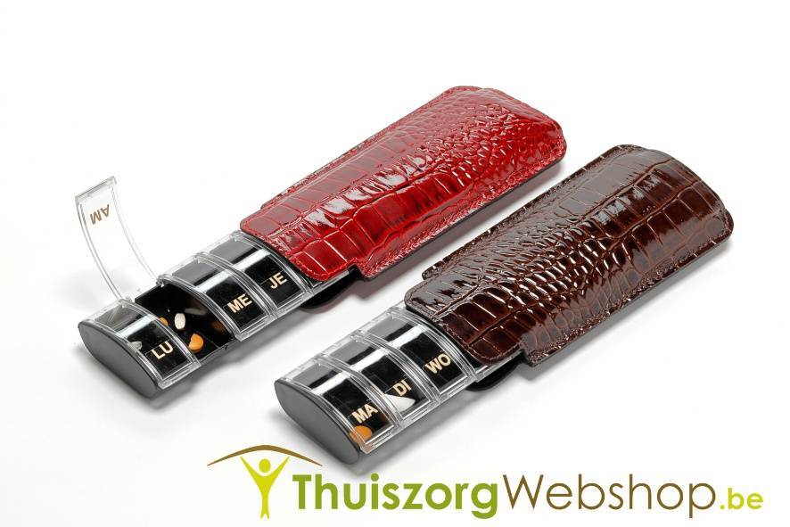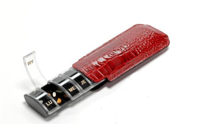 Luxe pillendoosje met lederen etui - Anabox voor 1 week, 1 vak/dag
