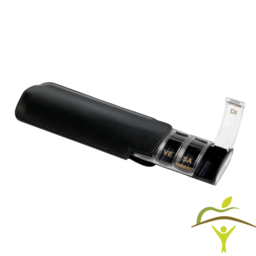 De luxe versie van dit pillendoosje is in het zwart uitgevoerd met discrete goudkleurige opdruk. Het pillendoosje zit in een stijlvol lederen etui en past hierdoor perfect in elke handtas of binnenzak. Een ideaal geschenk!