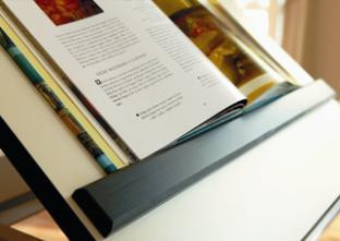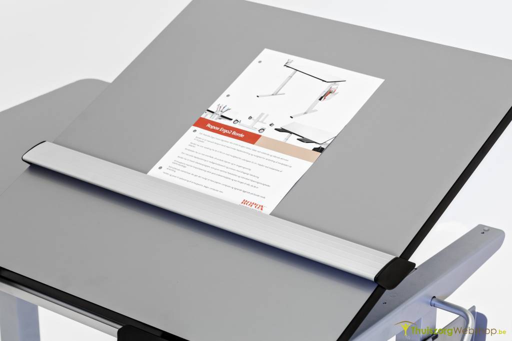 Elke Ergobasic tafel met inclineerbaar blad heeft een ingebouwde staalplaat. Met het magnetisch liniaal kan men voorwerpen ondersteunen of fixeren.