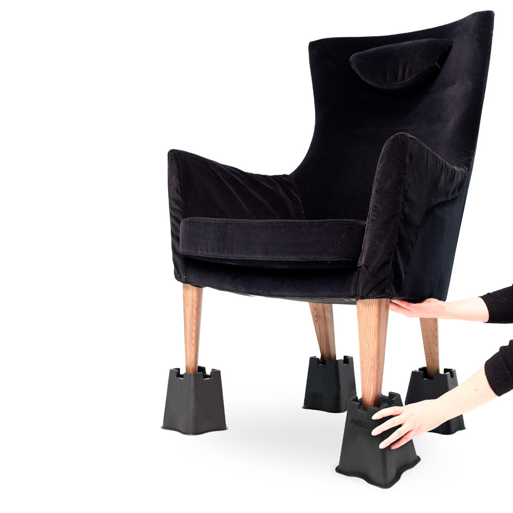 Een meubelverhoger is een hulpmiddel dat wordt gebruikt om meubels, zoals bedden, banken en tafels, te verhogen en zo de hoogte ervan aan te passen. Dit kan nuttig zijn voor mensen met beperkte mobiliteit of kracht, zoals ouderen of mensen met een handicap, die moeite hebben met het opstaan of gaan zitten van meubels die te laag zijn. Door het gebruik van meubelverhogers kan de hoogte van het meubel worden verhoogd en kan het gemakkelijker worden om op te staan en te gaan zitten. Dankzij de antisliplaag is het extra veilig.