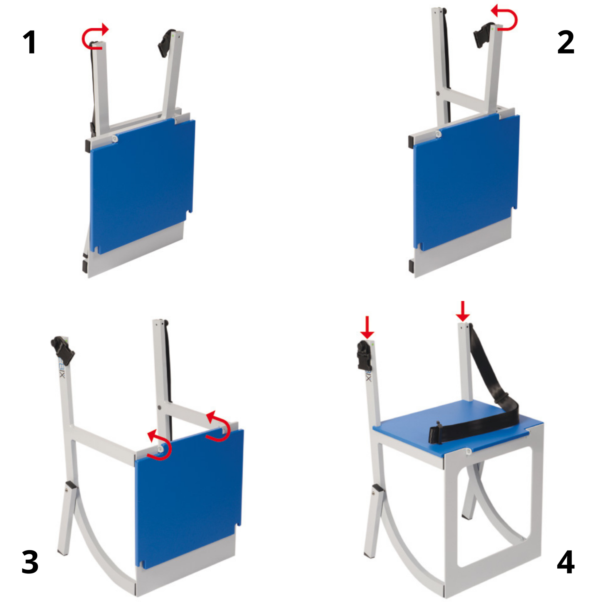 Door de rugleuning en de hoofdsteun te verstellen wordt de gevallen persoon zo comfortabel mogelijk opgetild. De geïntegreerde veiligheidsgordel voorkomt wegglijden op de zitting.