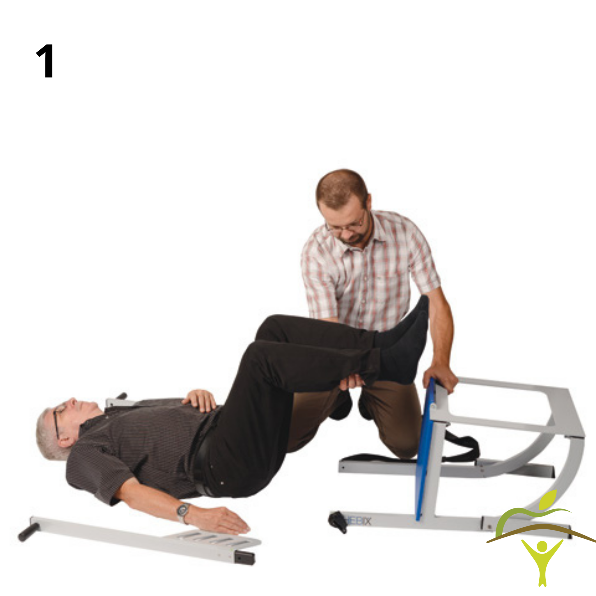 De innovatieve steunpoten van de tilhulp HEBIX werken autonoom en bewegen in de steunpositie zodra de verticale positie is bereikt. HEBIX is dan zelfdragend en de helper kan zich volledig concentreren op de getilde persoon.