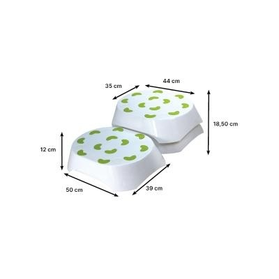 - Stapelbaar. Als je 2 treden op elkaar installeert, is de totale hoogte 18,5 cm, een besparing van 6,5 cm voor elke nieuwe trede