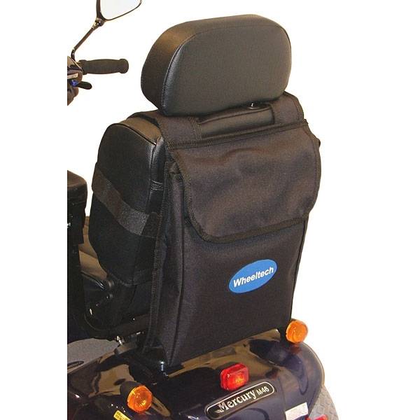 Enkelvoudige en stevige opbergtas voor over de rugleuning van de scooter. Deze tas is gemaakt van sterke, waterdichte nylon en zorgt er voor dat rolstoelgebruikers hun kleine persoonlijke spullen binnen handbereik hebben.