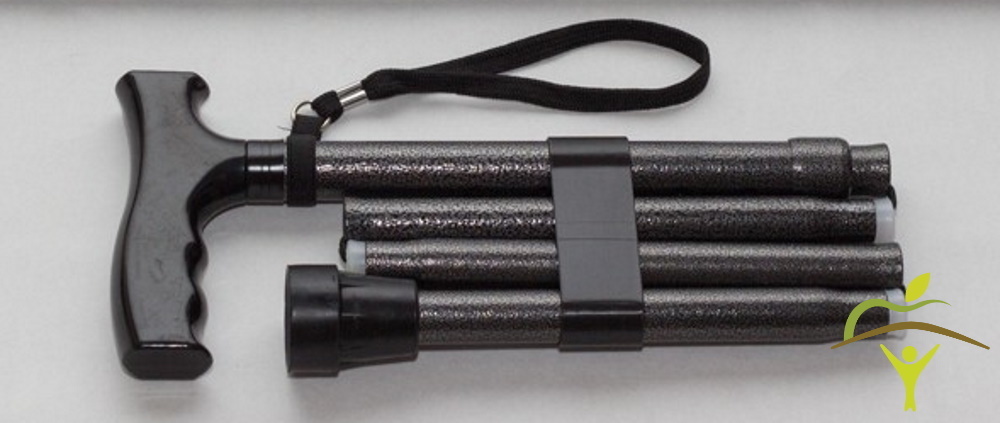Opvouwbare, lichtgewicht wandelstok met anatomisch handvat en clip om wandelstok samen te houden.