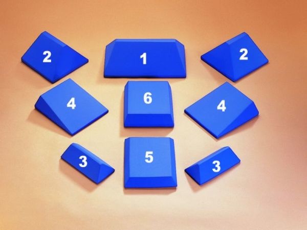 De positioneringsblokken zijn beschikbaar in 6 verschillende vormen, eveneens te verkrijgen in een 9-delige positioneringsset.