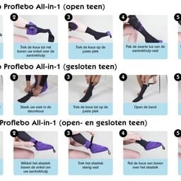 Proflebo ALL-IN-ONE aan- en uittrekhulp voor steunkousen met open teenstuk en gesloten teenstuk.