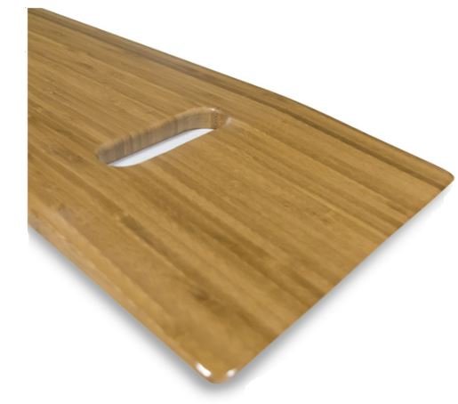 Transferplank in milieuvriendelijk bamboe. De uiteinden zijn dunner om een soepele glijdbeweging mogelijk te maken.