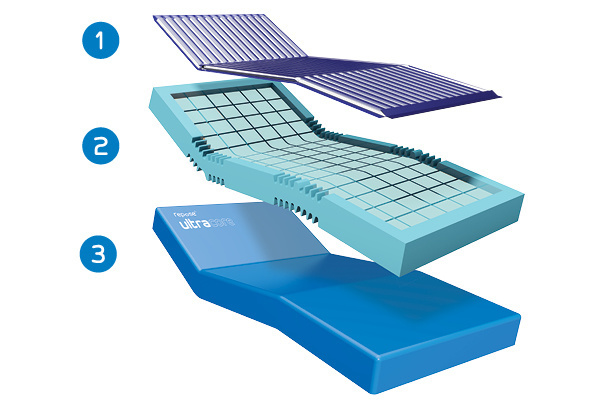 De Repose Ultracore matras combineert het beste van 3 werelden en biedt een gepast antwoord op zorgsituaties die een geïntegreerde oplossing vragen. De combinatie van een schuimmatras en een geïntegreerde Repose oplegmatras, vervat in een rekbare hoes verzekert een uiterst goede drukverdeling en een maximaal comfort.