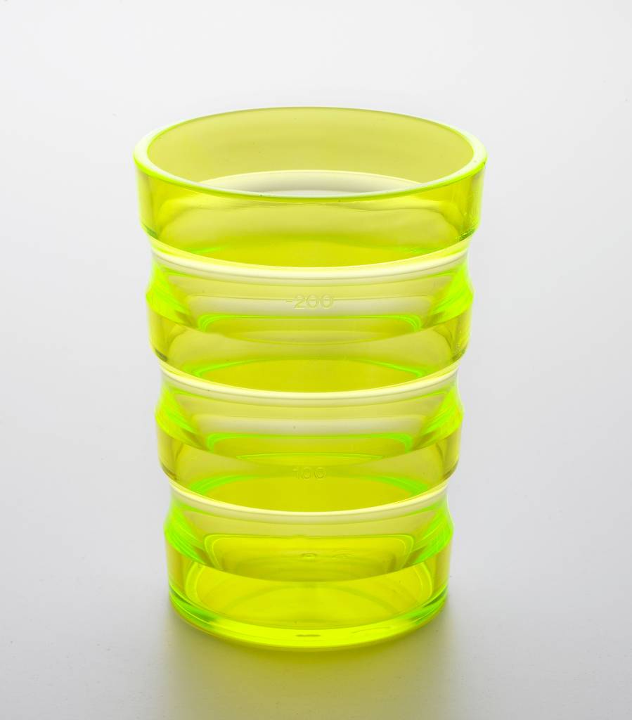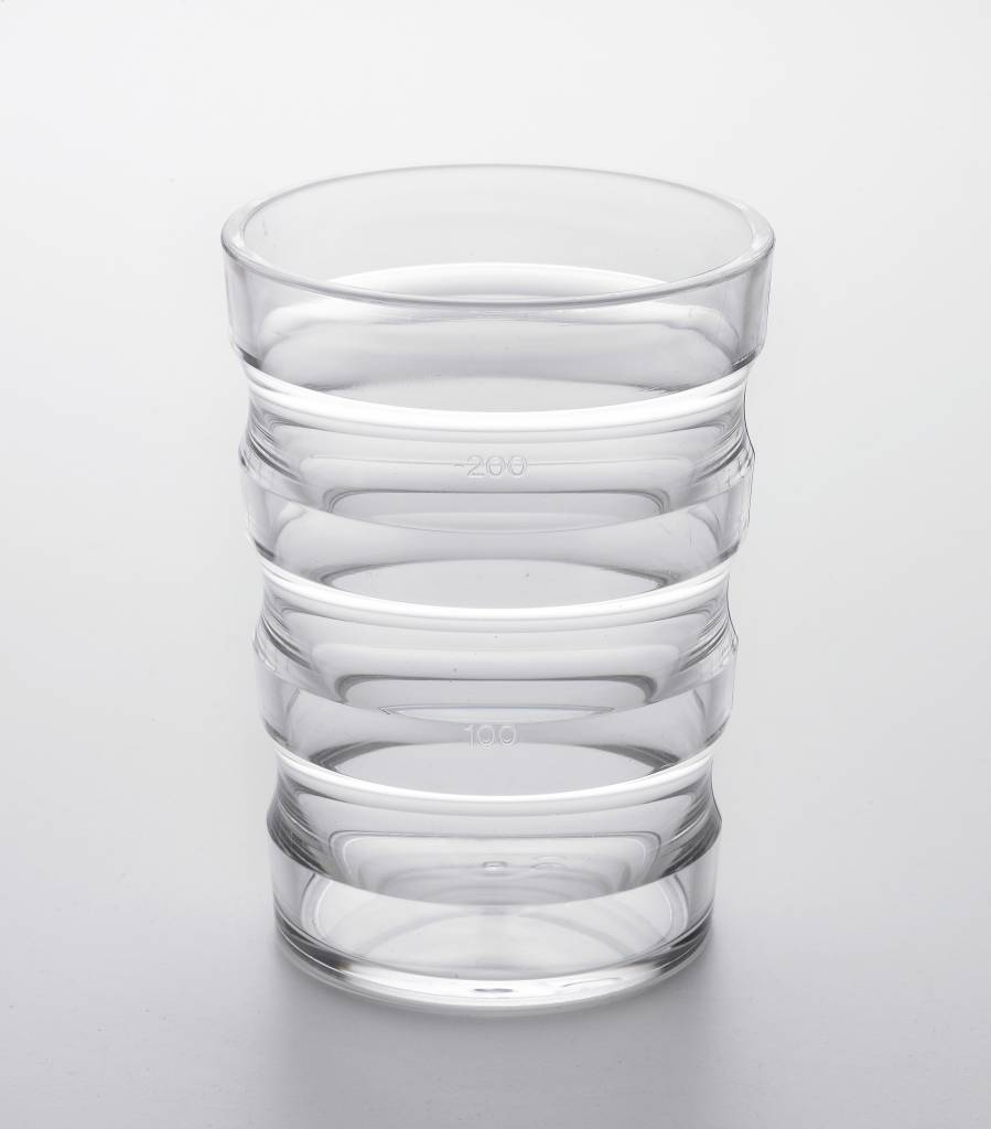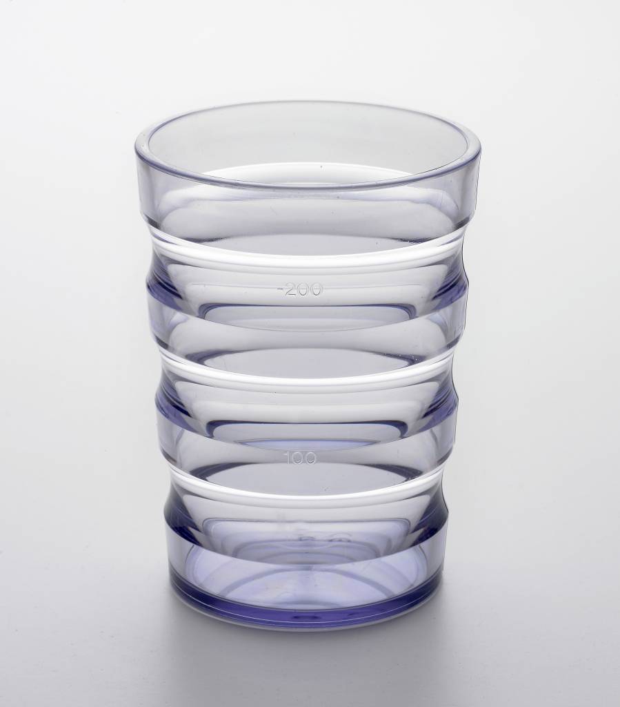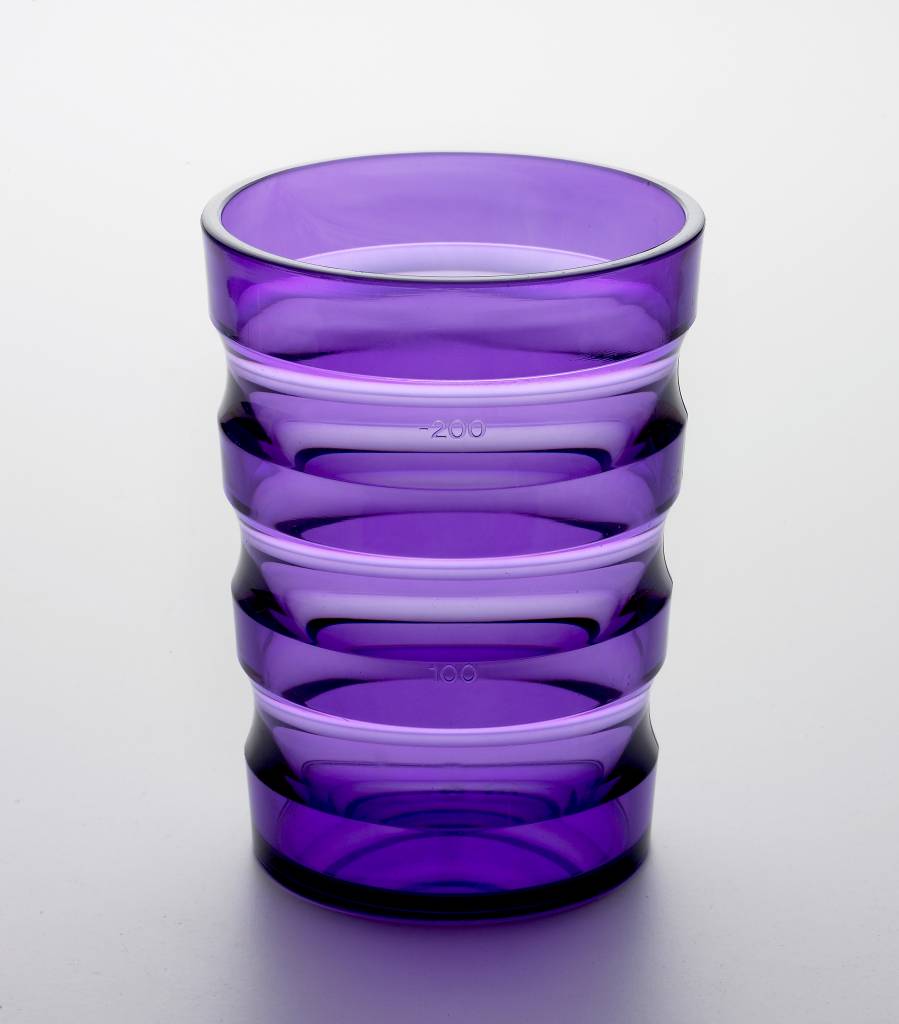 Bijzonder mooie en praktische beker met een zeer goede greep in polycarbonaat, PVC vrij.
