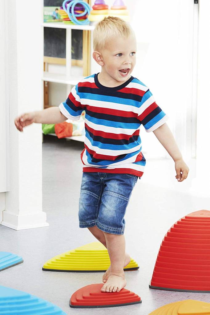 Rivierstenen zijn een aantrekkelijk spel bedoeld voor verbetering van de coördinatie en het evenwicht bij kinderen. Ze zijn geïnspireerd op de situatie in de natuur en prikkelen de verbeelding.