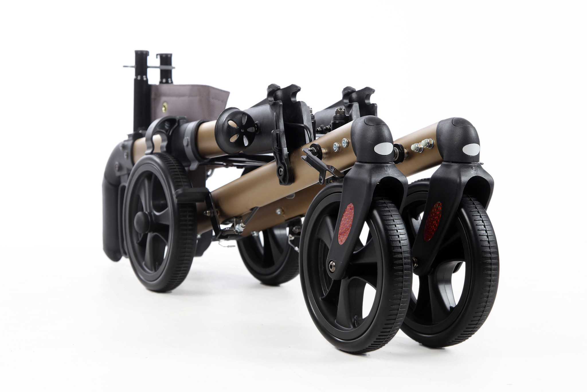 Met de Track rollator bent u altijd 3 stappen voor: Lichtgewicht, dubbel opvouwbaar. De Track heeft een tweeledig vouwsysteem. Hij kan niet alleen samen, maar ook nog eens dubbel gevouwen worden. In twee simpele stappen ongekend klein! Zo past hij eenvoudig in elk hoekje en met 7,4 kg kan hij makkelijk meegenomen worden. Een rollator zal deel uit gaan maken van het interieur. Daarom hebben we zorg gedragen voor een modern, mooi ontwerp dat gebruik maakt van duurzaam en aantrekkelijk materiaal.